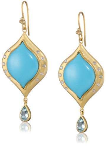 Lauren Harper Collection Archipeligo Blue 18k Gold, Turquoise and Diamond Arabesque Earrings Feature
