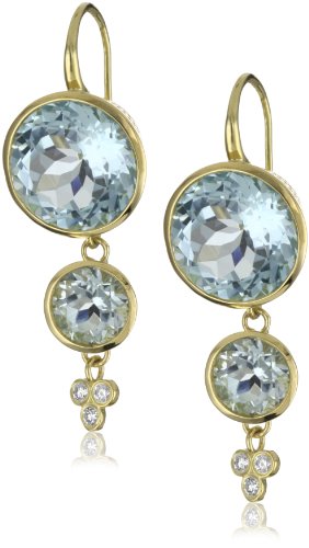 Crown work set brilliant cut round 12mm blue topaz with 7mm crown work set blue topaz and triple diamond drop.Made in United States..