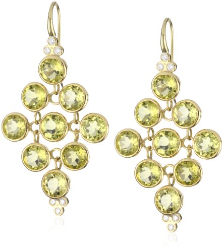 Made in United States Crown work set brilliant cut round 6mm green citrine diamond shaped (9 stones) earrings with diamonds