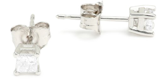 10k White Gold Princess-Cut Diamond Studs (1/4 cttw, J-K Color, I2-I3 Clarity) Feature