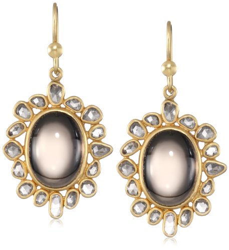 Lauren Harper Collection Midnight 18k Gold, Smokey Topaz and Champagne Rose Cut Diamond Oval Earrings Feature
