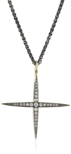 The 19" blackened silver wheat chain can be worn separately.Made in Thailand.A stunning statement piece!.Square Icicle Cross with white full cut diamonds .22ct.Mizuki's square cross charm with glistening white diamonds has her signature icicle silhouette included in its design..