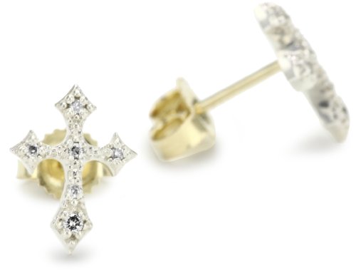 Made in United States.14 karat gold posts for pierced ears.These earrings make a great gift.Mizuki's mini gothic cross stud earrings, crafted in sterling silver, feature glistening white diamonds.These simplest yet stunning cross studs are perfect for everyday wear..