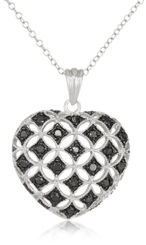 Sterling Silver Black Diamond Heart Pendant Necklace (.50 cttw), 18" Feature