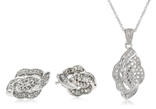 Sterling Silver Diamond Twist Shape Pendant and Earrings Box Set (1/5 Cttw, I-J Color, I2-I3 Clarity), 18" Feature