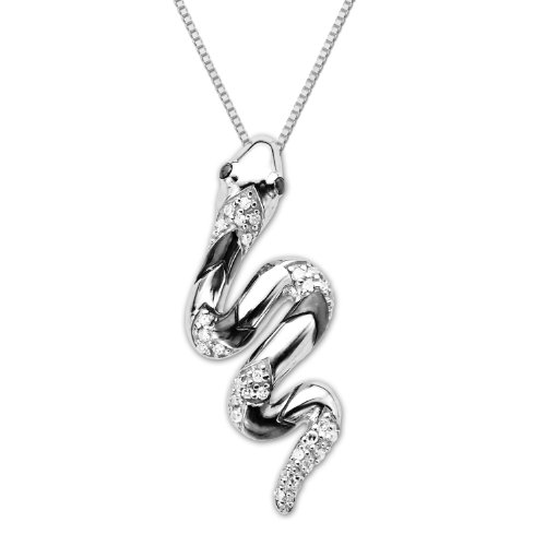 XPY Sterling Silver Diamond Snake Pendant Necklace, 18"