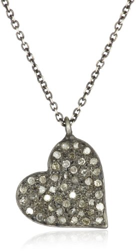 Zoe Chicco "Noir" 16" Oxidized Silver Diamond Heart Necklace Feature