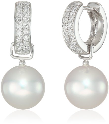 Baggins White Gold Diamond with White South Sea Pearl Dangle Hoop Earrings Feature