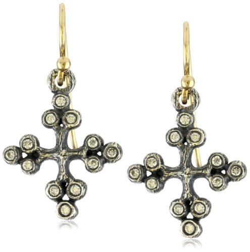 Erica Molinari "Renaissance"Small Sterling Silver Balled Cross Diamond Earrings Feature