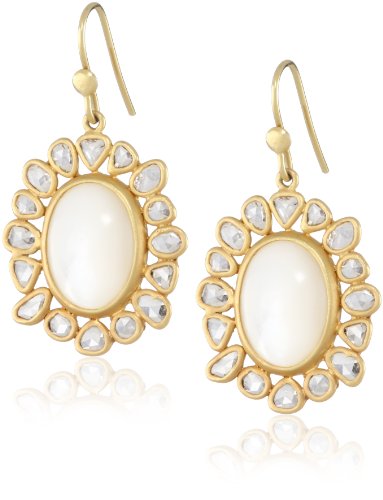 Lauren Harper Collection Over the Moon 18k Gold, Mother-Of-Pearl and Champagne Rose Cut Diamond Oval Earrings Feature