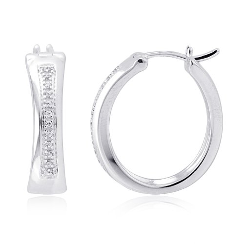 Argentium Super Silver Diamond Oval Hoop Earrings (0.08 Cttw, I-J Color, I2-I3 Clarity) Feature