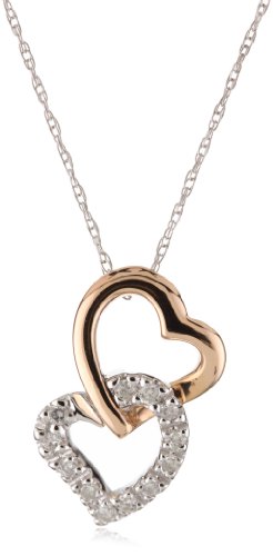 Kobelli 1/10 ct Diamond 14k Rose and White Gold Heart Shaped Pendant Necklace Feature