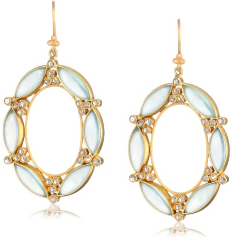 Lauren Harper Collection Archipeligo Blue 18k Gold, Peruvian Chalcedony and Rose Cut Diamond Oval Earrings Feature