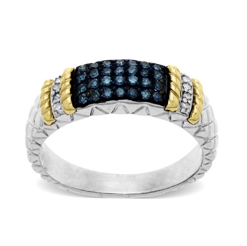 S&G Sterling Silver and 14k Yellow Gold Green Diamond Textured Ring, Size 7