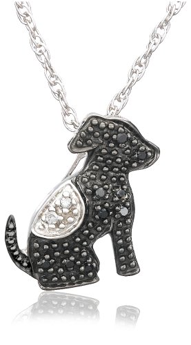 Sterling Silver Black and White Diamond Dog Pendant Necklace Feature