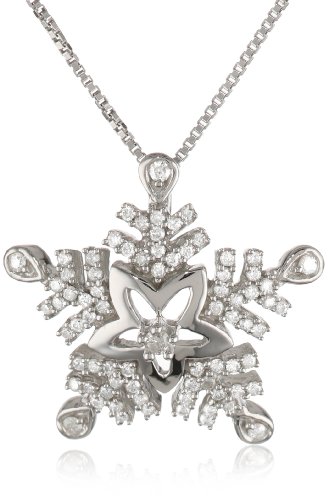Sterling Silver Diamond Snowflake Pendant Necklace (1/3 cttw, H-I color, I1-I2 Clarity), 18" Feature