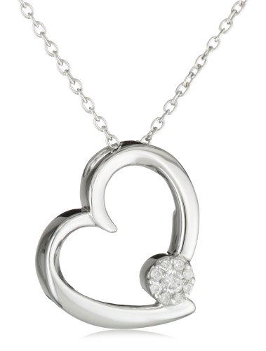 Women's Sterling Silver Diamond Resting Heart Pendant Necklace (1/ 10 cttw, I-J Color, I2-I3 Clarity), 18" Feature