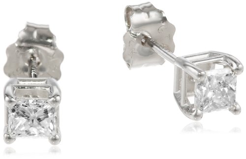 14k White Gold Princess-Cut Diamond Studs (1/2 cttw, I-J Color, I1-I-2 Clarity) Feature