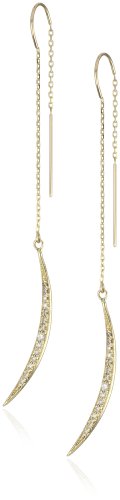 Crescent charm earrings with white full cut diamonds .16ct Mizuki's crescent earrings are filled with glistening white diamonds and hang from delicate gold chain Delicate 14k Gold chain earrings thread through the ear Super lightweight! Great for everyday wear or a night out on the town! Made in Thailand