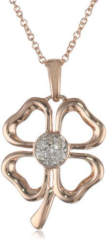 Women's 10k Rose Gold Diamond 4-leaf clover Pendant Necklace (0.06 cttw, I-J Color, I2-I3 Clarity), 18"