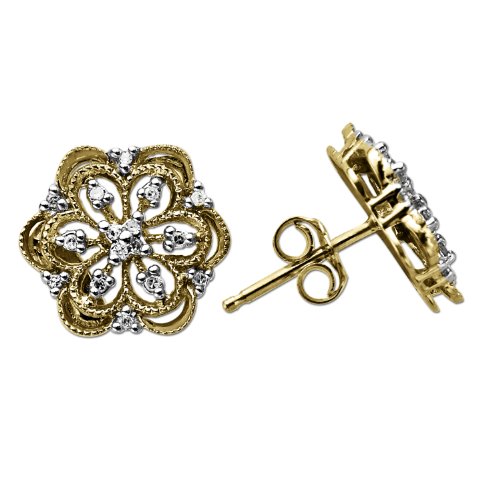 10k Yellow Gold Milgrain Flower and Diamond Stud Earrings