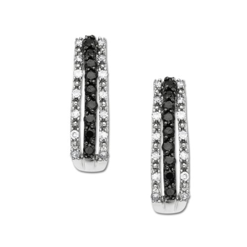 14k White Gold Black and White Diamond Half Hoop Earrings Feature