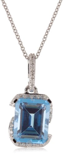 Kobelli 4 ct Blue Topaz and 1/6 ct Round Diamond Pendant Necklace Feature