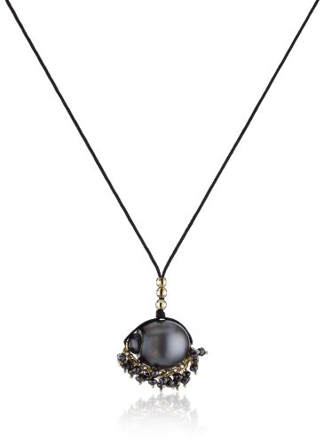 Mizuki 14k Necklace Black Poly-Silk Black South Sea Pearl Black Diamond Feature
