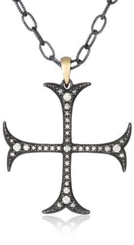 Mizuki 14Kt Shadow Silver Chain Charm Long Curly Cross Diamond Pendant Necklace (.3Ct), 16" Feature