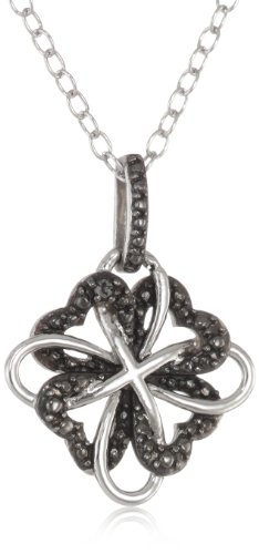 Sterling Silver Black Diamond Accent Clover Pendant Necklace (0.01 cttw), 18" Feature