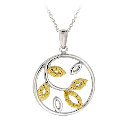 Sterling SilverYellow-Diamond Leaf Pendant Necklace Feature