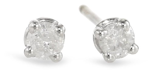 Boxed Sterling Silver Diamond Stud Earrings (1/10 cttw, J-K Color, I2-I3 Clarity) Feature
