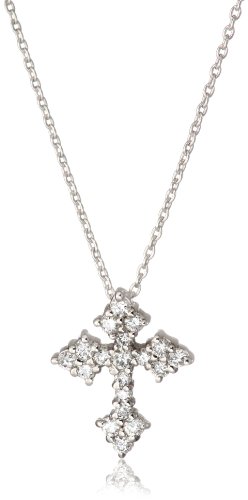 KC Designs "Faithfully Yours" 14k White Gold and Diamond Cross Pendant Necklace Chain, 16" Feature