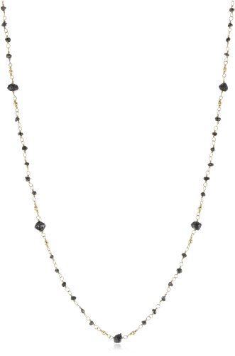 Store in the provided cloth bag to protect 18" long necklace looks great layered or worn alone Domestic 18" hand wrapped necklace with faceted 14kt gold beads and black rough diamonds