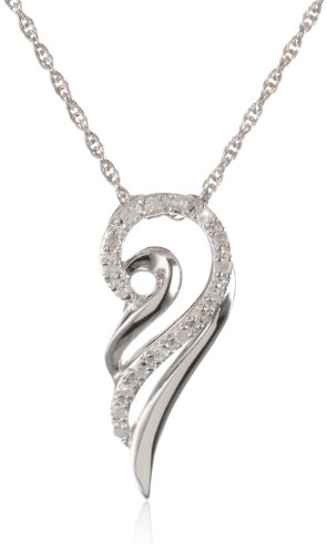 Sterling Silver 1/10 cttw Diamond Angel Wing Pendant Necklace, 18"