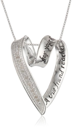 Sterling Silver "A True Friend Reaches For Your Hand and Touches Your Heart" Open Heart Pendant Necklace with Diamonds (0.1 cttw, Feature