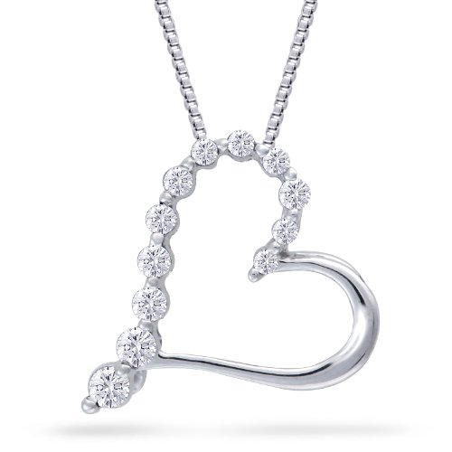 Women's 10K White Gold Diamond Journey Heart Pendant Necklace (1/10 cttw, I-J Color, I2-I3 Clarity), 18"