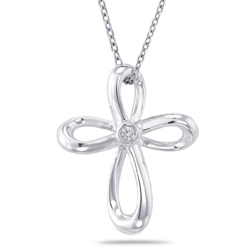 Women's Sterling Silver Diamond Infinity Cross Pendant Necklace (0.06 cttw, I-J Color, I2 Clarity)