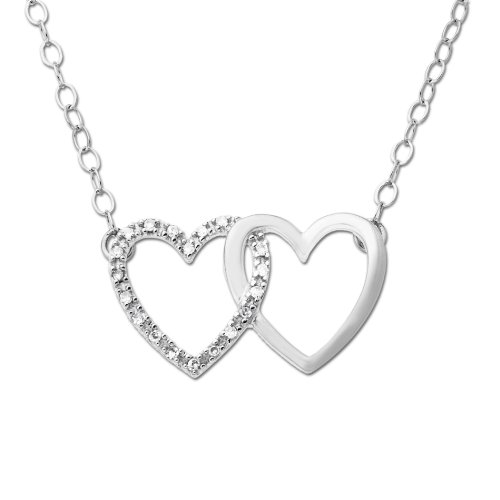 XPY 10k White Gold Double Heart and Diamond Necklace (.057cttw, I-J Color; 12-I3 Clarity), 17" Feature