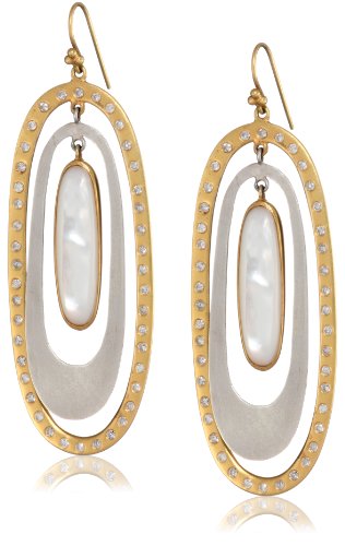 These dramatic two toned 18k gold and silver ovals playfully move around mother of pearl ovals. Imported