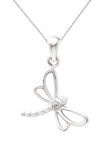 Sterling Silver Diamond Dragonfly Pendant Necklace