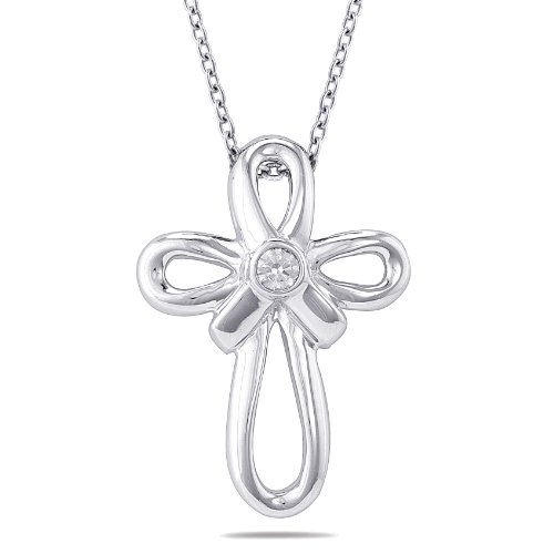 Sterling Silver Diamond "Ribbon of Hope" Cross Pendant Necklace (0.06 CTTW, I-J Color, I2-I3 Clarity), 18"
