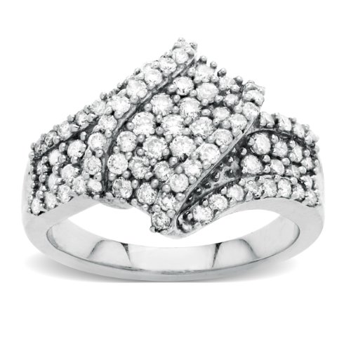 Sterling Silver Diamond Ribbon Design Ring, Size 7 (1 cttw, I-J Color, I2-I3 Clarity) Feature