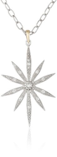 Mizuki 14Kt Silver Chain Charm Long Flower Diamond Pendant Necklace (.25Ct), 16" Feature