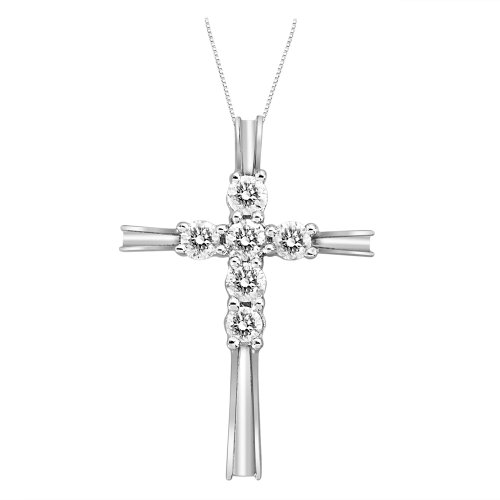 Sterling Silver Diamond Cross Pendant Necklace (1/5 cttw, H-I color, I1-I2 Clarity), 18"