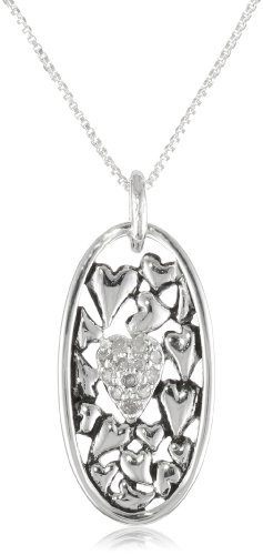 Sterling Silver "The Love Between a Mother and Daughter Knows No Distance" Oval Pendant with Diamond Pave Heart Necklace (.1 Feature