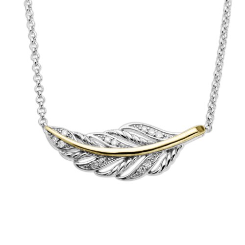 XPY Sterling Silver and 14k Yellow Gold Leave with Diamond Accent Necklace, 17"