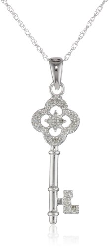 10k White Gold Diamond Key Pendant Necklace (1/10 cttw, I-J Color, I1-I2 Clarity), 18" Feature