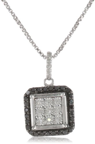 DiAura Sterling Silver Black and White Diamond Square Pendant Necklace (.19 cttw, I-J Color, I2-I3 Clarity), 18" Feature