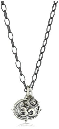 The evil eye has a stunning diamond The 23" sterling silver oxidized large oval link chain perfectly suits the piece Erica's oxidized sterling silver om and lotus charm are perfect compliment to each other, symbolizing advancement of the soul Domestic These charms are removable and can be worn alone or together